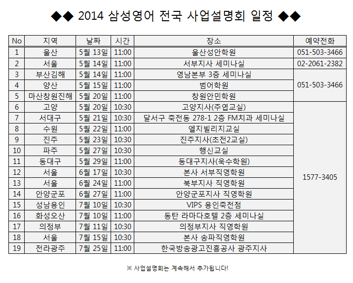 <2014 »ï¼º¿µ¾î Àü±¹ »ç¾÷¼³¸íȸ>¿¡ ¿©·¯ºÐÀ» ÃÊ´ëÇÕ´Ï´Ù!